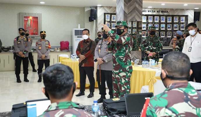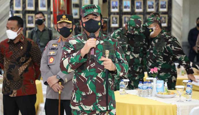 “Ingat Bapak-bapak dan Ibu-ibu sekalian virus itu tidak pernah libur, oleh sebab itu seluruh Jajaran TNI-Polri saya minta harus kerja keras untuk membantu Pemerintah Daerah melindungi masyarakat dalam memutus mata rantai penyebaran Covid-19,” tegas Panglima TNI.