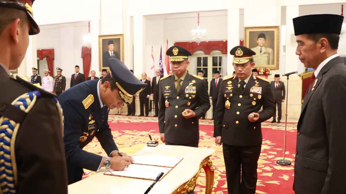 INILAHONLINE.COM, JAKARTA — Panglima TNI Jenderal TNI Agus Subiyanto, S.E., M.Si, menjadi Saksi pada acara Pelantikan Kepala Staf Angkatan Udara (Kasau) Marsekal Madya TNI Mohamad Tonny Harjono, S.E., M.M., oleh Presiden RI Ir. H. Joko Widodo, di Istana Negara, Jakarta Pusat, Jum’at (5/4/2024).