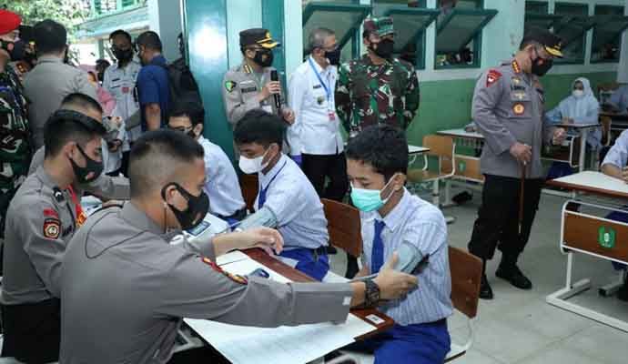 Kemudian, Panglima TNI, Kapolri dan Kepala BNPB meninjau pelaksanaan vaksinasi di SMAN 1 Pontianak. Tiba di lokasi, Panglima TNI langsung disambut oleh Kepala Sekolah SMAN 1 Pontianak.