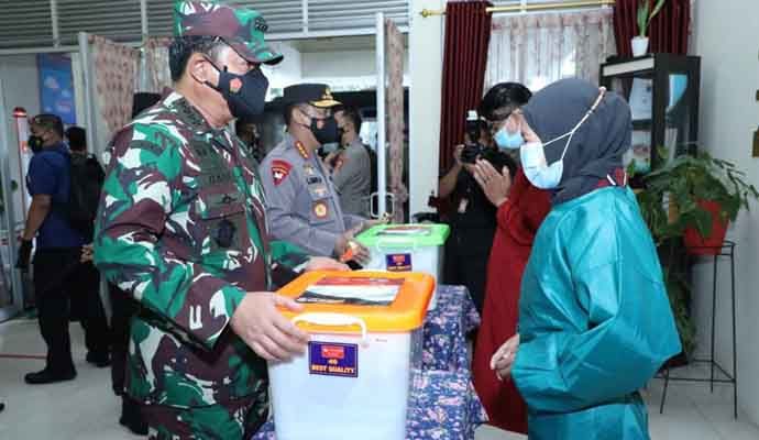 “Kepada aparat TNI-Polri, Pemerintah Daerah maupun Dinas Kesehatan perlu kita ketahui bahwa kasus konfirmasi sudah mulai turun, itu semua berkat kerja keras yang kita lakukan bersama selama ini. Kita wajib bersyukur namun tidak boleh lengah, karena kemungkinan-kemungkinan terburuk bisa terjadi,” tegas Panglima TNI.(Badarudin)