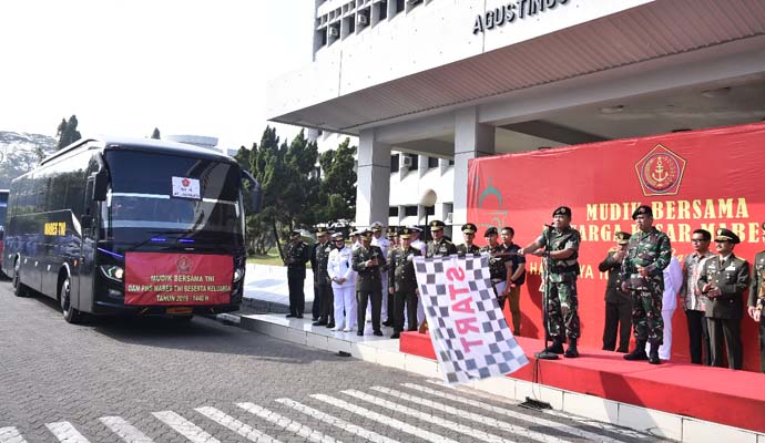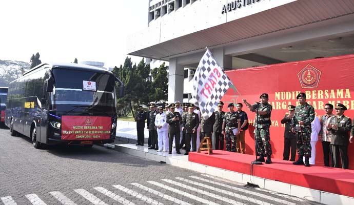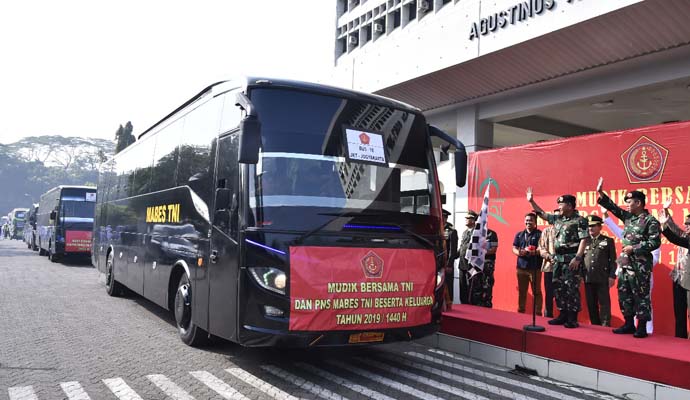 Pelaksanaan mudik bersama keluarga besar Mabes TNI dalam rangka Hari Raya Idul Fitri 1440 H/2019 M, berjumlah 1120 orang menggunakan 32 unit bus dengan tujuan Jakarta-Surabaya, Jakarta-Madiun, Jakarta-Solo, Jakarta-Yogyakarta, Jakarta-Semarang, Jakarta-Purwokerto dan Jakarta-Purworejo.