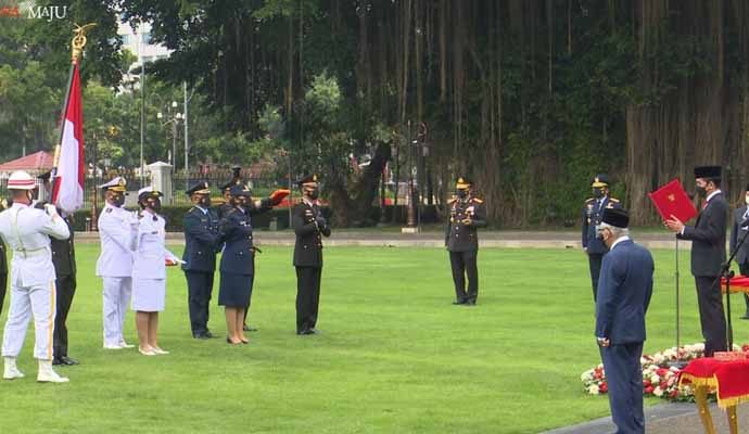 INILAHONLINE.COM, JAKARTA — Panglima TNI Marsekal TNI Hadi Tjahjanto, S.I.P. menghadiri Upacara Prasetya Perwira (Praspa) Akademi TNI dan Akademi Kepolisian yang dipimpin langsung oleh Presiden Republik Indonesia Ir. H. Joko Widodo, bertempat di Istana Merdeka, Jakarta, Selasa (13/7/2021).