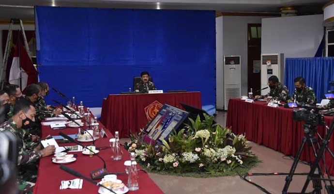 INILAHONLINE.COM, JAKARTA – Panglima TNI Marsekal TNI Hadi Tjahjanto, S.I.P. memimpin Rapat Evaluasi Pemberlakuan Pembatasan Kegiatan Masyarakat Skala Mikro yang dihadiri Kasad, Kasal dan Kasau serta seluruh jajaran TNI, bertempat di Gedung Persada Lanud Halim Perdanakusuma, Jakarta Timur, Selasa (25/5/2021).