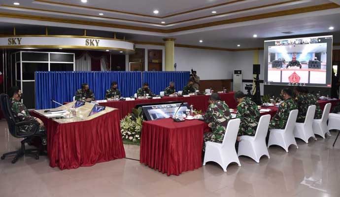 Rapat Evaluasi Pemberlakuan Pembatasan Kegiatan Masyarakat (PPKM) Skala Mikro yang berlangsung secara virtual dan tatap muka tersebut, diikuti oleh 232 peserta dari jajaran TNI AD, TNI AL dan TNI AU.