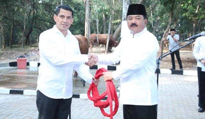 Selanjutnya, Panglima TNI dan Ketum Dharma Pertiwi menyerahkan hewan kurban Sapi kepada Dandenma Mabes TNI Brigjen TNI Robertus Donatus Ndona selaku Ketua Panitia. Adapun jumlah hewan kurban yang terkumpul sebanyak 15 ekor Sapi dan 17 ekor Kambing.