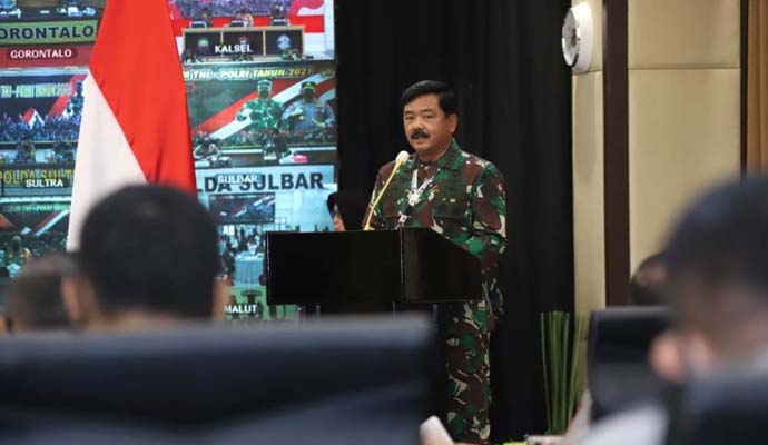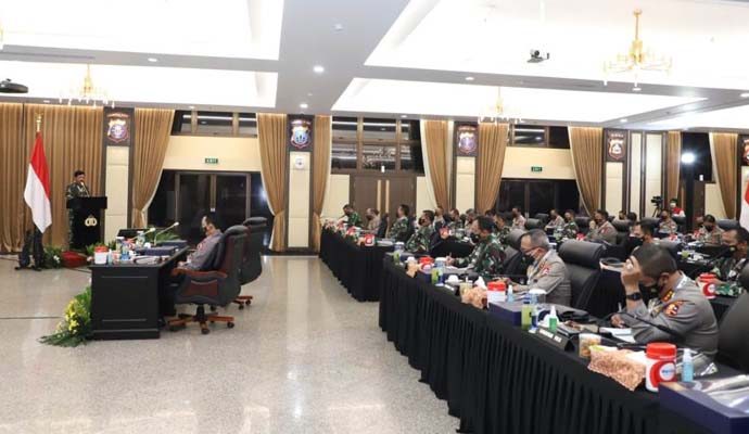 Soliditas dan sinergi TNI-Polri telah mampu menjaga persatuan dan kesatuan bangsa dari berbagai ancaman dan gangguan terhadap ke-Bhineka Tunggal Ika-an bangsa Indonesia. Demikian ditegaskan Panglima TNI Marsekal TNI Hadi Tjahjanto, S.I.P. di hadapan peserta Rapim TNI-Polri tahun 2021, baik yang dilaksanakan secara langsung dengan protokol kesehatan yang ketat bertempat di Mabes Polri, Jakarta Selatan, maupun secara virtual di berbagai wilayah Indonesia, Senin (15/2/2021).