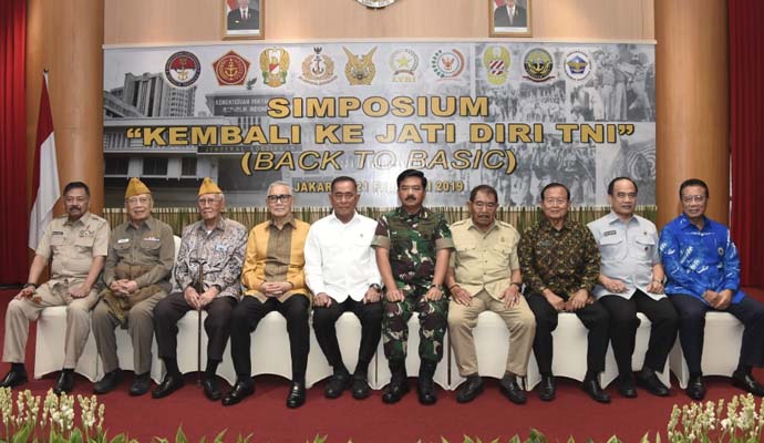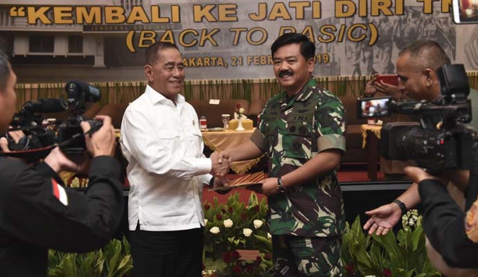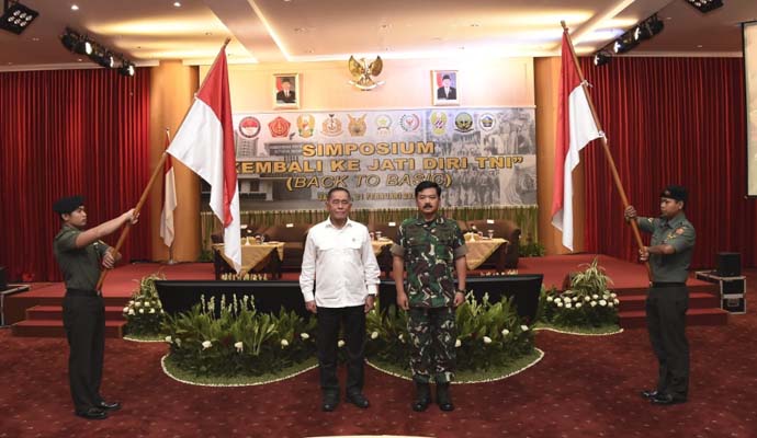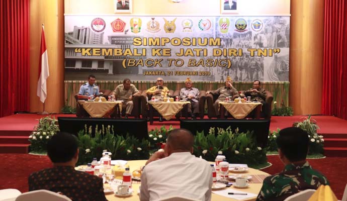 Panglima TNI Marsekal TNI Hadi Tjahjanto, S.I.P. menghadiri simposium “Kembali Ke Jati Diri TNI” yang diselenggarakan oleh Kementerian Pertahanan Republik Indonesia (Kemhan RI), bertempat di Gedung A.H. Nasution Kemhan RI, Jl. Medan Merdeka Barat, Jakarta Pusat, Kamis (21/2/2019).