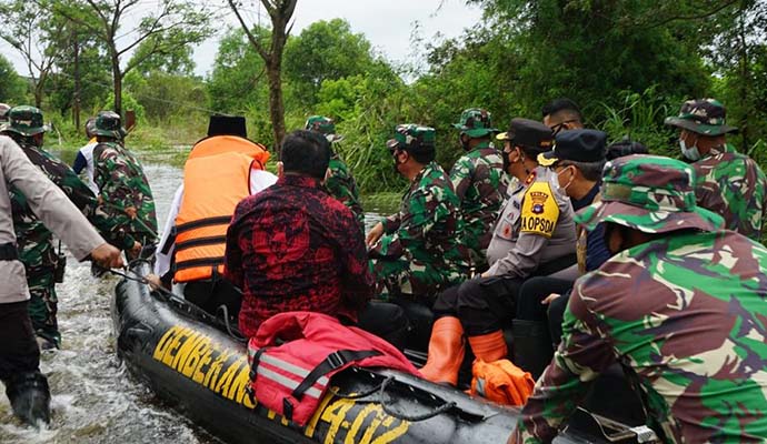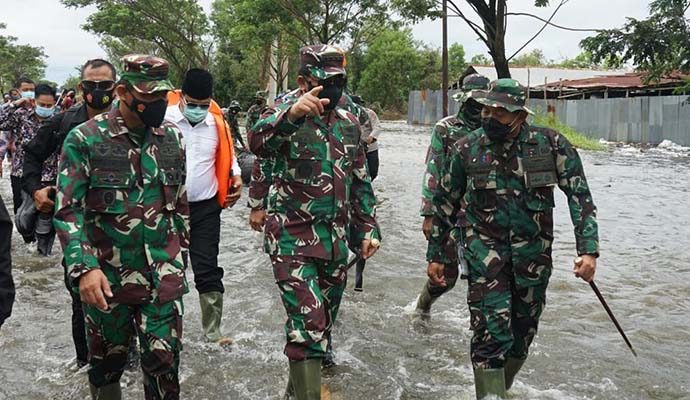 Panglima TNI Marsekal TNI Hadi Tjahjanto, S.I.P., meninjau langsung lokasi bencana banjir di Kabupaten Tanah Laut Kalimantan Selatan, Sabtu (16/01/2021).