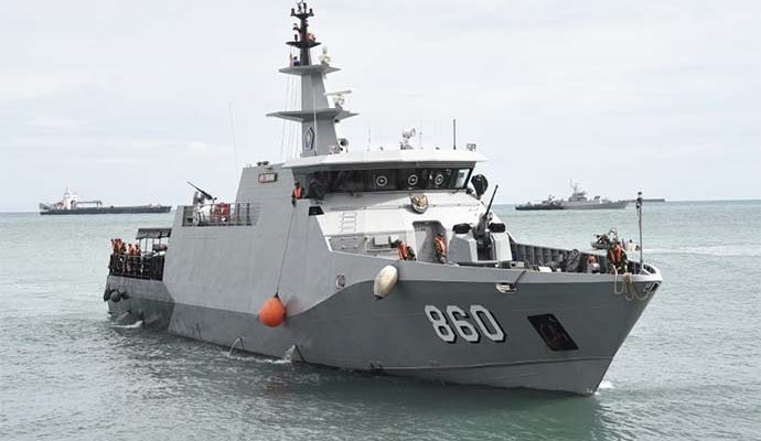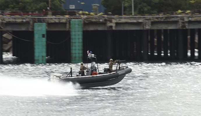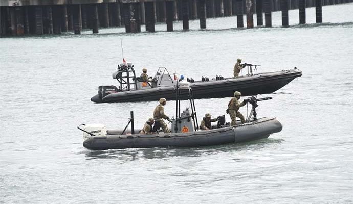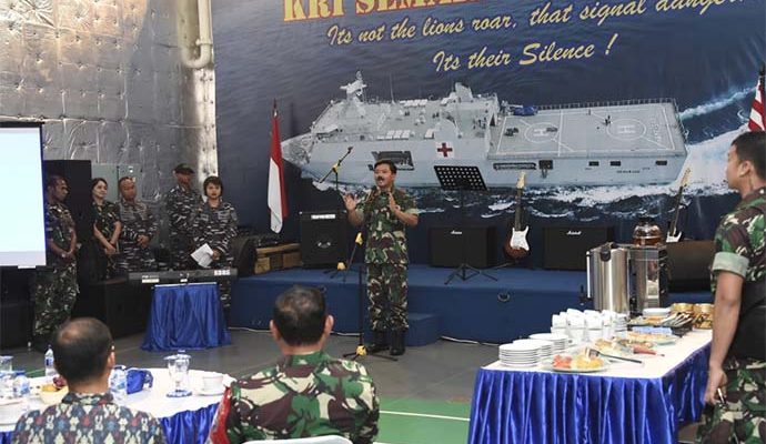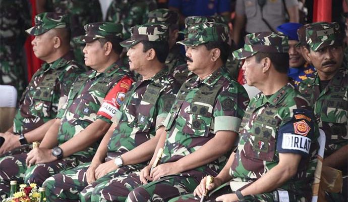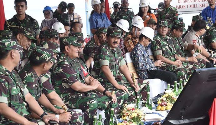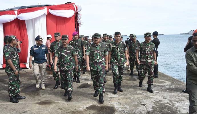Panglima TNI, Marsekal TNI Hadi Tjahjanto, S.I.P. didampingi Kasal, Laksamana TNI Siwi Sukma Adji, S.E., M.M., Pangdam III/Siliwangi Mayjen TNI Tri Soewandono dan Pangkoarmada I Laksda TNI Yudo Margono, S.E., M.M., meninjau Latihan Kesiapsiagaan Operasional Koarmada I, di Dermaga PLTU PT. Indonesia Power Suralaya, Cilegon, Banten, Kamis (28/3/2019).