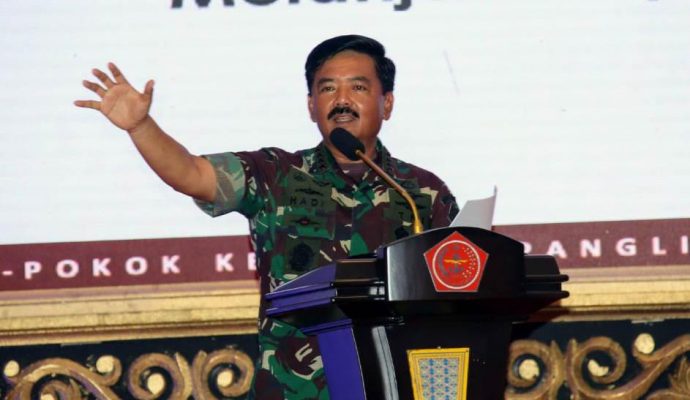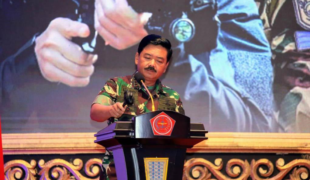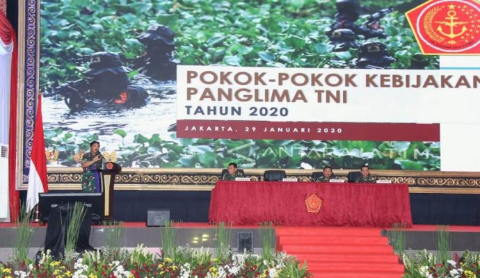 Panglima TNI Marsekal TNI Dr. (H.C.) Hadi Tjahjanto, S.I.P. didampingi Kasal Laksamana TNI Siwi Sukma Adji, S.E., M.M., Kasau Marsekal TNI Yuyu Sutisna, S.E., M.M., dan Wakasad Letjen TNI Tatang Sulaiman, menutup secara resmi Rapat Pimpinan (Rapim) TNI tahun 2020, bertempat yang dilaksanakan di GOR A. Yani Mabes TNI, Cilangkap, Jakarta Timur, Rabu malam (29/1/2020).