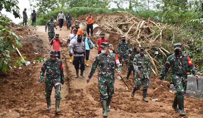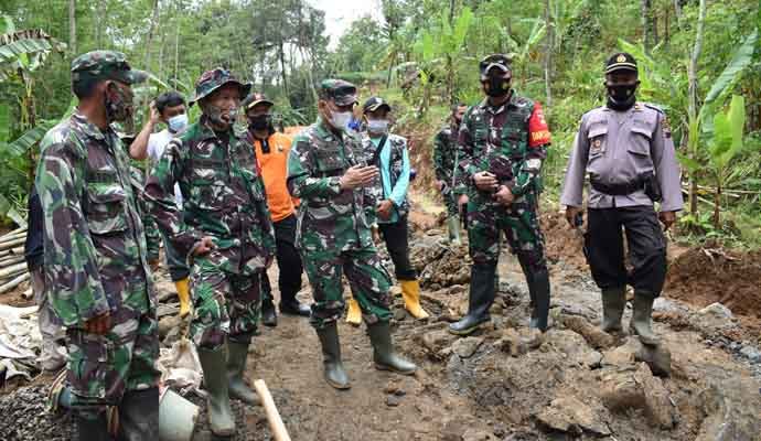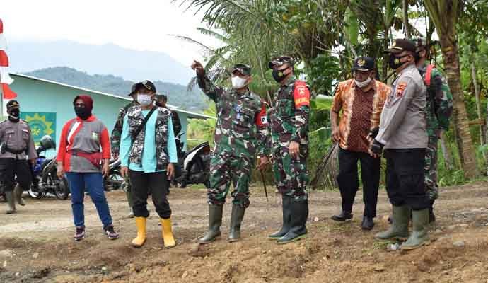 Komandan Korem 071/Wijayakusuma Kolonel Inf Dwi Lagan, S.I.P., mengecek pelaksanaan kegiatan TMMD Reguler 110 Kodim 0702/Banyumas di Desa Tumanggal Kec. Pengadegan Kab. Purbalingga, Kamis (11/3/2021).