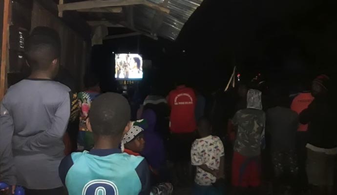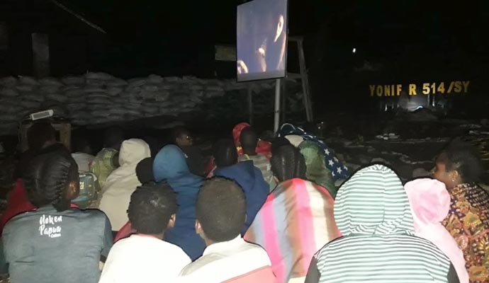 Adapun film yang diputar bercerita tentang kehidupan sehari-hari masyarakat Papua berjudul “Di Timur Matahari”, yang dihadiri sekitar 100 orang warga Kampung.