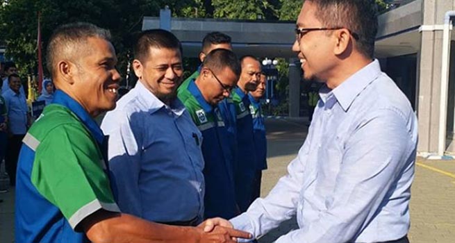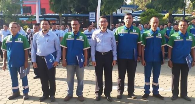 INILAHONLINE.COM, BOGOR – Apel pagi di lingkungan PDAM Tirta Pakuan Kota Bogor dipimpin Manajer Quality, Health, Safety & Environment (QHSE) Hendra Setiawan, sekaligus pemberian penghargaan masa kerja 20 tahun kepada enam pegawai. Antara lain Abdillah (Staf Asisten Manajer Sumber), Hendra Permana (Asisten Manajer Pembaca Meter), Bachtiar Rivai (Staf Asisten Manajer Pengolahan 2), Sarkis Suhermanysah (Staf Asisten Manajer Pengolahan 1), dan Novia Mochamad Fitri (Supervisor Sumber Ciherang Pondok dan Tangkil). Dalam amanatnya, Hendra menyampaikan rencana penyesuaian tarif PDAM Tirta Pakuan Kota yang rencananya berlaku mulai rekening bulan Oktober dibayar bulan November 2018.