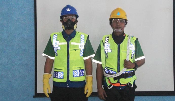 Perwakilan staf masing-masing Sub Departemen di PDAM Tirta Pakuan Kota Bogor mengikuti kegiatan yang bertujuan untuk menjaga keselamatan dan kesehatan kerja pada semua karyawan terutama yang bekerja di lapangan, serta.