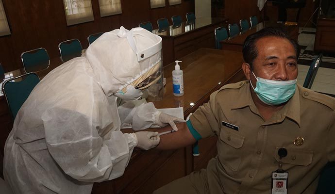 “Kita berikan kuota sebanyak 84, khususnya bagi para pejabat di lingkup Setda, ditambah beberapa rekan wartawan dan para tenaga yang berhubungan langsung dengan masyarakat di lingkup setda juga. Mudah-mudahan hasilnya sehat semua,” kata Retno.