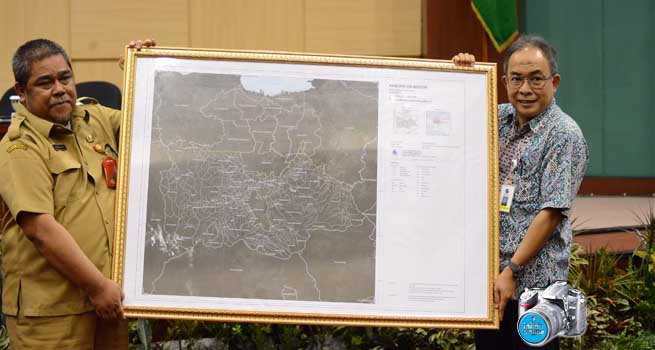 Pada kesempatan ini juga dilakukan penyerahan secara simbolik peta Kabupaten Bogor dan Merchandise oleh Badan Infomasi Geospasial kepada Pemerintah Kabupaten Bogor. (Basir)