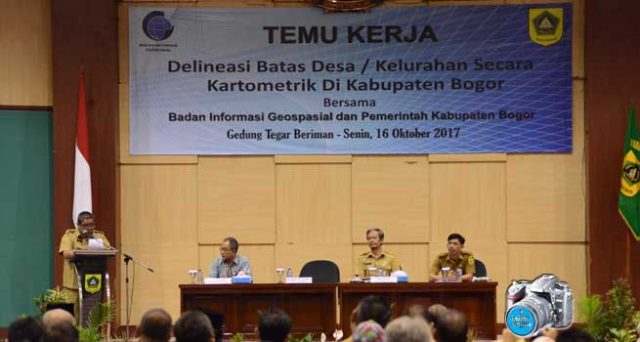 InilahOnline.com (Cibinong-Kab Bogor) – Pemerintah Kabupaten Bogor bersama dengan Badan Informasi Geospasial menggelar acara temu kerja dalam rangka kegiatan delineasi batas desa/kelurahan secara kartometrik di Kabupaten Bogor bertempat di Gedung Tegar Beriman pada Senin (16/10). Hadir dalam kegiatan tersebut para Kepala Desa dan Lurah serta para Camat se-Kabupaten Bogor.