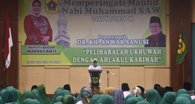 Bupati Bogor, Hj. Nurhayanti merasakan suasana dalam memperingati Maulid Nabi Muhammad SAW tingkat Kabupaten Bogor dengan semarak dan khidmat. Karena dihadiri ratusan ASN Kabupaten Bogor serta undangan lainnya dengan penceramah KH. Anwar Sanusi, bertempat di Gedung Tegar Beriman, Cibinong, pada Rabu (12/12).
