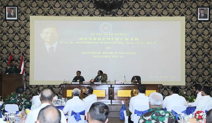 Demikian dikatakan Kasum TNI, Letjen TNI Joni Supriyanto saat mendampingi Menteri Koordinator Bidang Politik, Hukum dan Keamanan Republik Indonesia (Menkopolhukam RI) Prof. Dr. Mahfud MD pada kunjungan kerja dan memberikan pengarahan kepada Prajurit Detasemen Jala Mangkara TNI AL di Mako Detasemen Jala Mangkara, Cilandak, Jakarta Selatan, Rabu (29/7/2020).