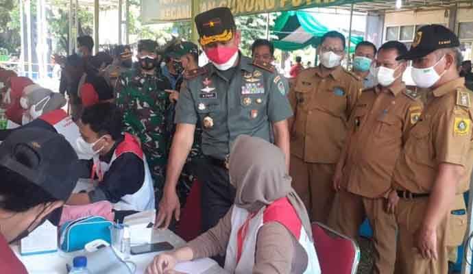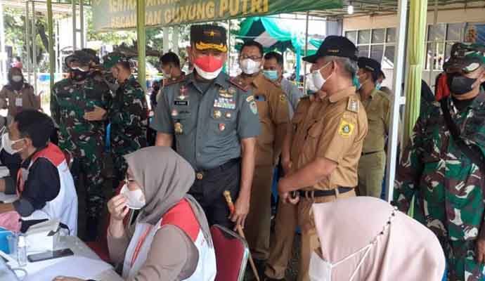 INILAHONLINE.COM, GUNUNG PUTRI — Danrem 061 Brigjen. TNI Achmad Fauzi meninjau langsung sentra vaksinasi Covid-19 di wilayah Kecamatan Gunung Putri, Senin (20/9). Danrem 061 mengungkapkan untuk mempercepat pelaksanaan vaksinasi Covid-19 di Kabupaten Bogor, dirinya menargetkan 3.000-5.000 vaksinasi per hari.