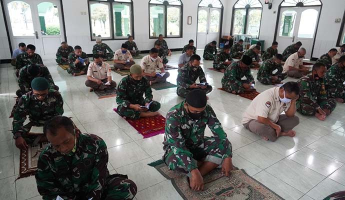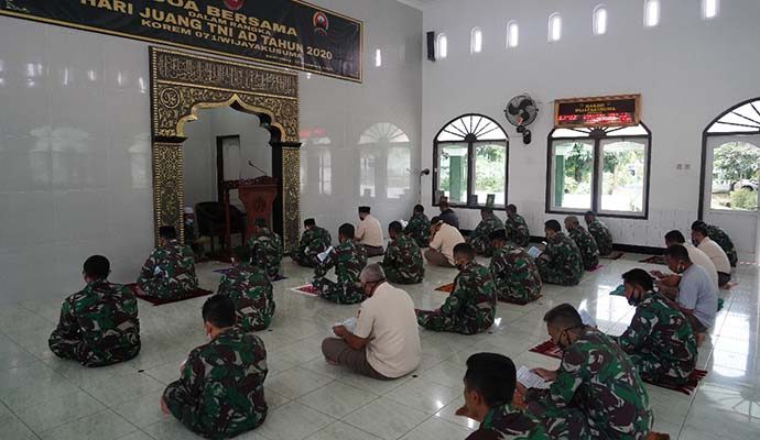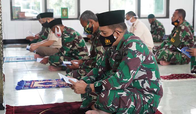 Lantunan Surat Yasin, Tahlil dan Doa menggema di Masjid Wijayakusuma Makorem 071/Wijayakusuma. Lantunan ayat-ayat Allah SWT tersebut disenandungkan para Prajurit dan PNS Makorem 071/Wijayakusuma dan Balak Aju Kodam IV/Diponegoro jajaran Korem 071/Wijayakusuma yang berada dalam satu lingkungan dengan Makorem 071/Wijayakusuma dalam rangka Doa Bersama Hari Juang TNI AD Korem 071/Wijayakusuma, Selasa (15/12/2020) di Masjid Wijayakusuma Makorem 071/Wijayakusuma, Sokaraja, Banyumas.