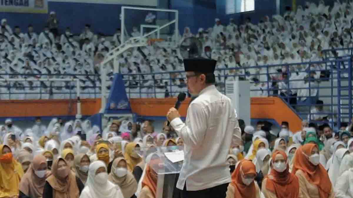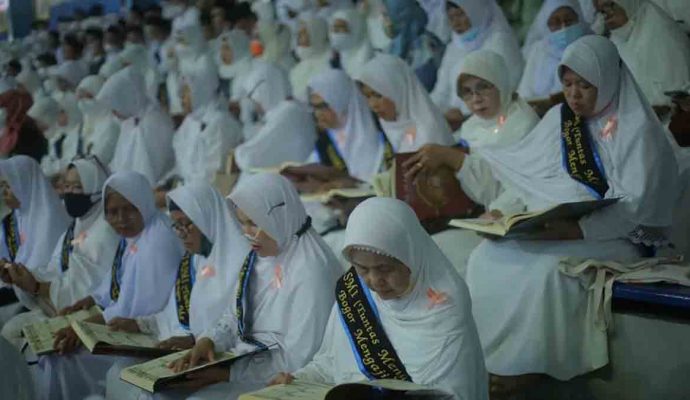 INILAHONLINE.COM, BOGOR — Sebanyak 1.500 peserta Bogor Mengaji Angkatan Pertama yang didominasi para lanjut usia (lansia) dari enam kecamatan di Kota Bogor, Selasa (19/4/2022), secara resmi di wisuda di Indoor GOR Pajajaran. Wali Kota Bogor, Bima Arya didampingi Ketua TP PKK Kota Bogor, Yane Ardian bersama Ketua DPRD Kota Bogor, Atang Trisnanto dan Wakil Ketua TP PKK Kota Bogor, Yantie Rachim secara simbolis mewisuda 12 peserta perwakilan dari 6 kecamatan.