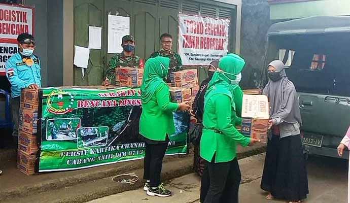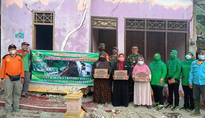 Persit Kartika Chandra Kirana Cabang XXIII Kodim 0713 Brebes, melalui Ranting 11 Sirampog, Koramil 10 Sirampog, menyalurkan bantuan sembako kepada 26 KK yang merupakan korban bencana alam tanah bergerak di Dusun Sambungregel RT/RW. 03, Desa Manggis, Kecamatan Sirampog, Kabupaten Brebes, Jawa Tengah.