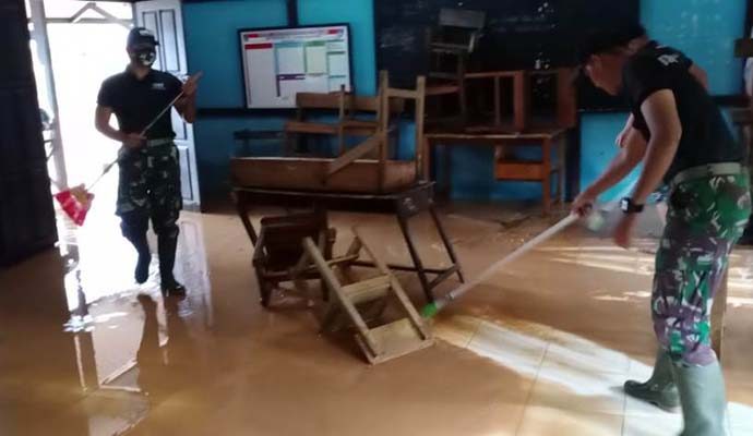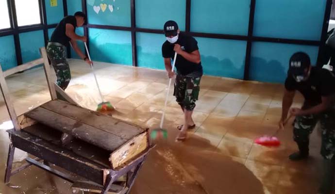 “Pembersihan lumpur dan sampah pasca banjir selain dilaksanakan di lingkungan sekolah, juga dilaksanakan di pemukiman warga,” tambahnya.
