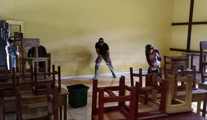 Dansatgas Pamtas Yonif 642/Kapuas Letkol Inf Alim Mustofa dalam rilis tertulisnya di Kabupaten Sanggau, mengatakan bahwa personel Satgas Pos Kout Jagoi Babang dipimpin Serda Yohan Madu beserta lima orang anggota lainnya melakukan gotong royong bersama warga dan Guru SD 1 Jagoi Babang.