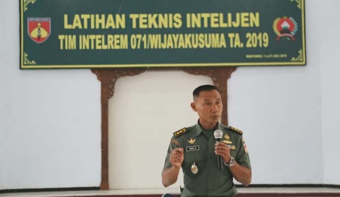 Latihan tehnis intelijen guna untuk memelihara dan meningkatkan kemampuan intelijen bagi aparat intelijen khusysnya Tim Intelrem 071/Wijayakusuma dalam melaksanakan tugas pokok dan fungsinya sesuai dengan situasi yang terus berkembang. Hal ini, ditegaskan Danrem 071/Wijayakusuma Kolonel Kav Dani Wardhana, S.Sos., M.M., M.Han., dalam amanat tertulisnya yang disampaikan Kasrem 071/Wijayakusuma Letkol Inf Heri Sumitro, S.Pd., pada Pembukaan Latihan Tehnis Intelijen Tim Intel Korem 071/Wijayakusuma Tahun 2019, Senin (1/7/2019) di Gedung Pertemuan A. Yani Makorem 071/Wijayakusuma Sokaraja, Banyumas.