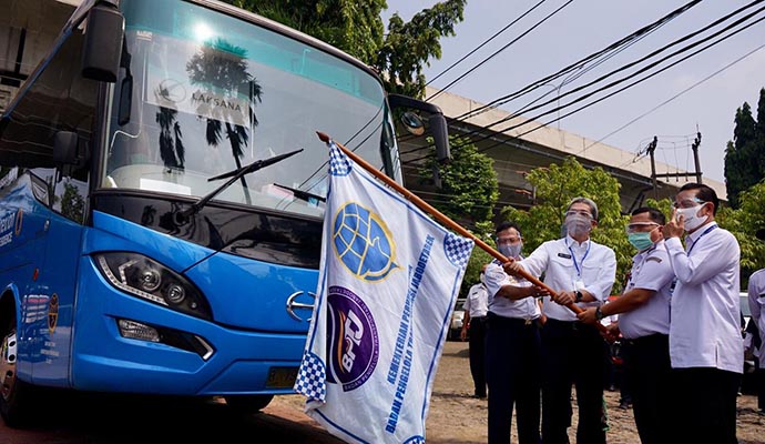 Wakil Wali Kota Bogor, Dedie A. Rachim bersama Dirut PPD, Pande Putu Yasa dan Dirjen Angkutan Jalan BPTJ, Aca Mulyana secara resmi melepas armada yang akan melayani rute Taman Sari Persada – Blok M dan Taman Sari Persada – Juanda atau sebaliknya.