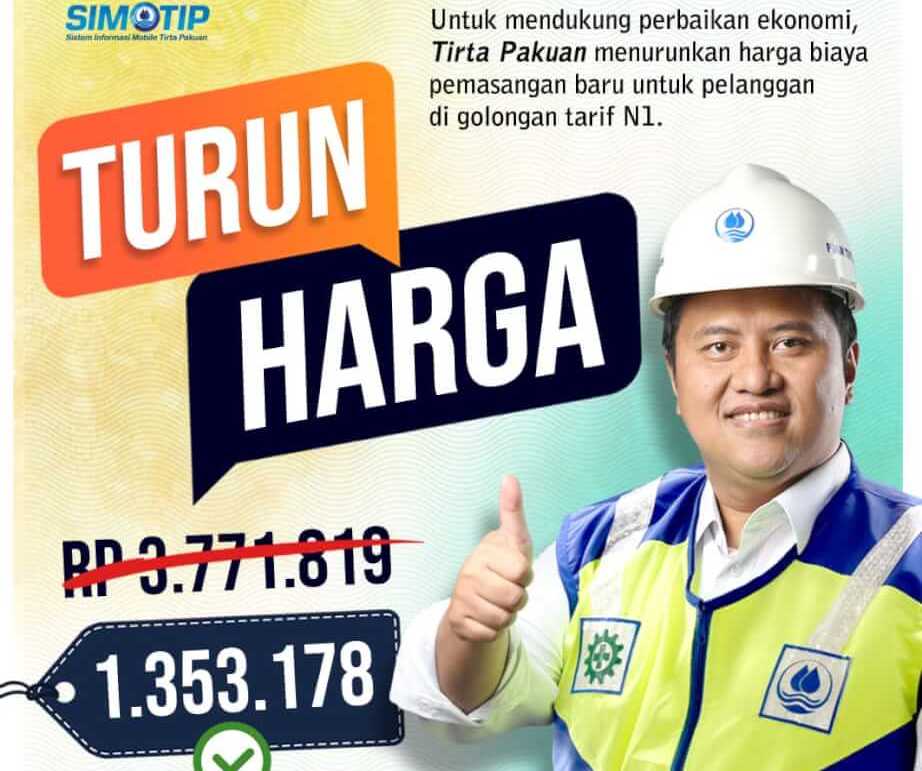 INILAHONLINE.COM, BOGOR – Untuk mendukung perbaikan ekonomi, Perumda Tirta Pakuan Kota Bogor menurunkan harga biaya pemasangan baru untuk pelanggan golongan tarif N1. Hal itu diungkapkan Direktur Utama (Dirut) Perumda Tirta Pakuan Rino Indira Gusniawan kepada media, Kamis (16/2/2022)