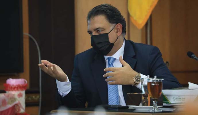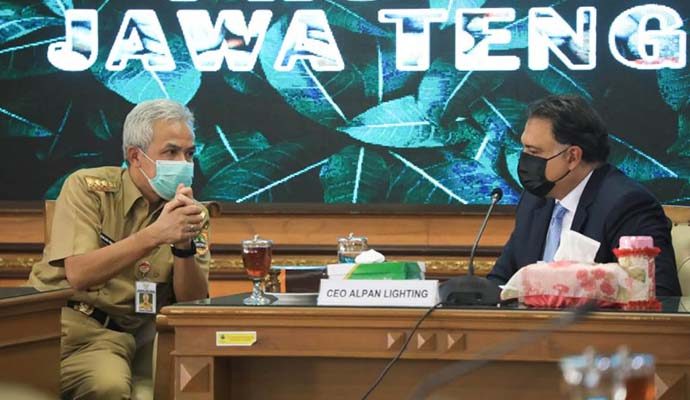 President & CEO Alpan Lighting Danny Sooferian melakukan pertemuan dengan Gubernur Jawa Tengah Ganjar Pranowo, di Kantor Gubernur Jateng Senin (10/8/2020). Pada pertemuan itu Danny menyampaikan salah satu alasan memindahkan pabrik ke Jateng yakni karena Ganjar.