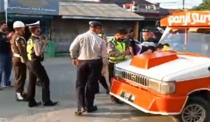 INILAHONLINE.COM, BREBES — Petugas gabungan yang terdiri dari TNI-Polri, Dishub, DPMPTSP (Dinas Penanaman Modal dan Pelayanan Terpadu Satu Pintu), dan Satpol PP Kabupaten Brebes, kembali merazia odong-odong yang beroperasi di jalanan di wilayah Kecamatan Kersana, Brebes, Jawa Tengah. Senin (12/7/2021).