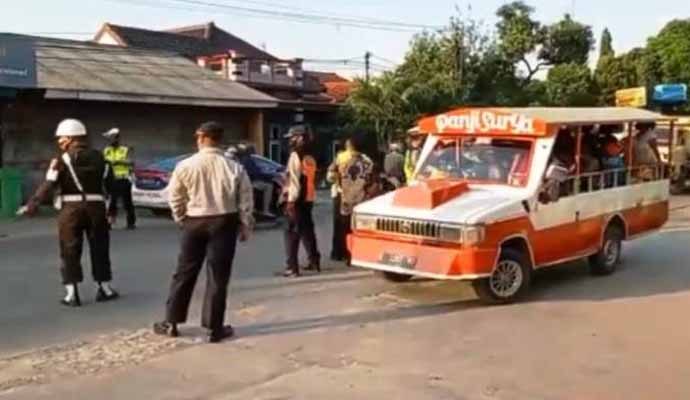 Petugas menurunkan para penumpang kemudian menilang pengemudi dan selanjutnya menyita serta mengamankan odong-odong ke Satlantas Polres Brebes.