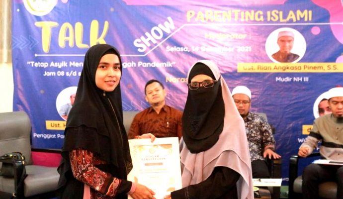 Sementara itu, pemateri kedua dalam kegiatan Talkshow Dr. Sovy Sultanah selaku wali murid NH III, menyampaikan materi berupa sudut pandang seorang ibu tentang betapa asyik dalam mendidik, meningkatkan imunitas di tengah pandemi Covid-19 untuk keluarga maupun masyarakat.