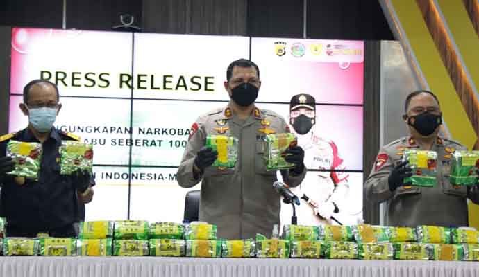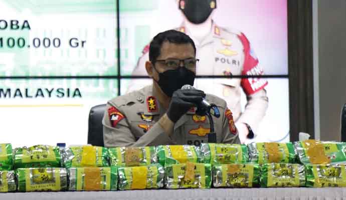 INILAHONLINE.COM, BANDA ACEH — Kepolisian Daerah (Polda) Aceh melalui Ditresnarkoba berhasil mengungkap kasus narkotika jenis sabu seberat 100 kg jaringan internasional Indonesia – Malaysia dalam bulan November 2021.