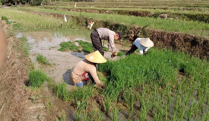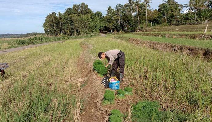 Hal tersebut terlihat ketika pada hari ini, Ahad (19/07/20) pagi, AIPDA Saenal turun ke sawah dan membantu warganya yang sedang menanam Padi sebagai bentuk ketahanan pangan di masa pandemi sekarang ini.