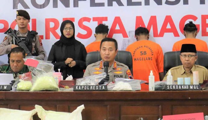 Bersama Sekda Kabupaten Magelang, Adi Waryanto dan Dandam 0705 Magelang, Letkol Infantri Jarod Susanto S.H Msi, Kapolresta Magelang KBP Ruruh Wicaksono menyampaikan, bahwa informasi berawal dari tim Resmob Polresta Magelang yang melaksanakan backup Unit Reskrim Polsek Srumbung, dua orang pelaku berhasil diamankan yaitu, MYA, dan SM.