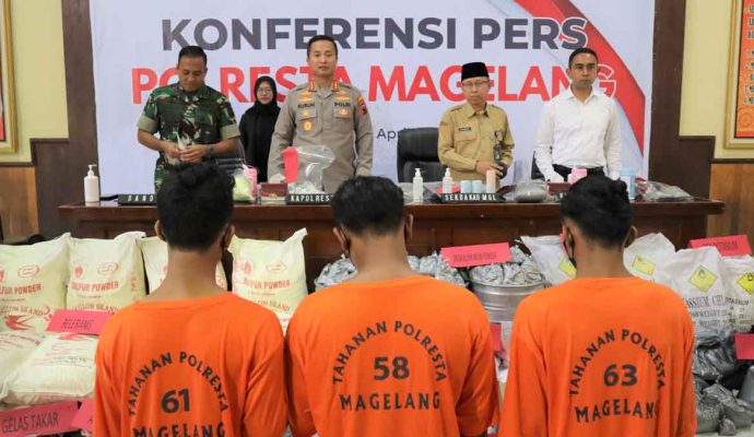 Ke tiga orang pelaku terkait dengan kepemilikan obat mercon jadi, dan bahan-bahan pembuat serta peralatan untuk meraciknya sudah diamankan. “Bahwa tadi malam, hari Minggu, 9 April 2023 pukul 22.30 WIB telah berhasil diamankan tiga pelaku di Dusun Krajan, Desa Srumbung, Kecamatan Srumbung, Kabupaten Magelang,” jelasnya.