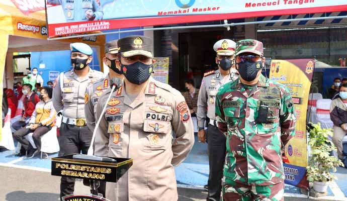 INILAHONLINE.COM, SEMARANG – Polrestabes Semarang menggelar pelaksanaan kegiatan Vaksinasi di empat titik yang ada di Kota Semarang. Selain dari fasilitas kesehatan milik pemerintah, Polrestabes Semarang telah disiapkan 69 tempat untuk vaksinasi ini.