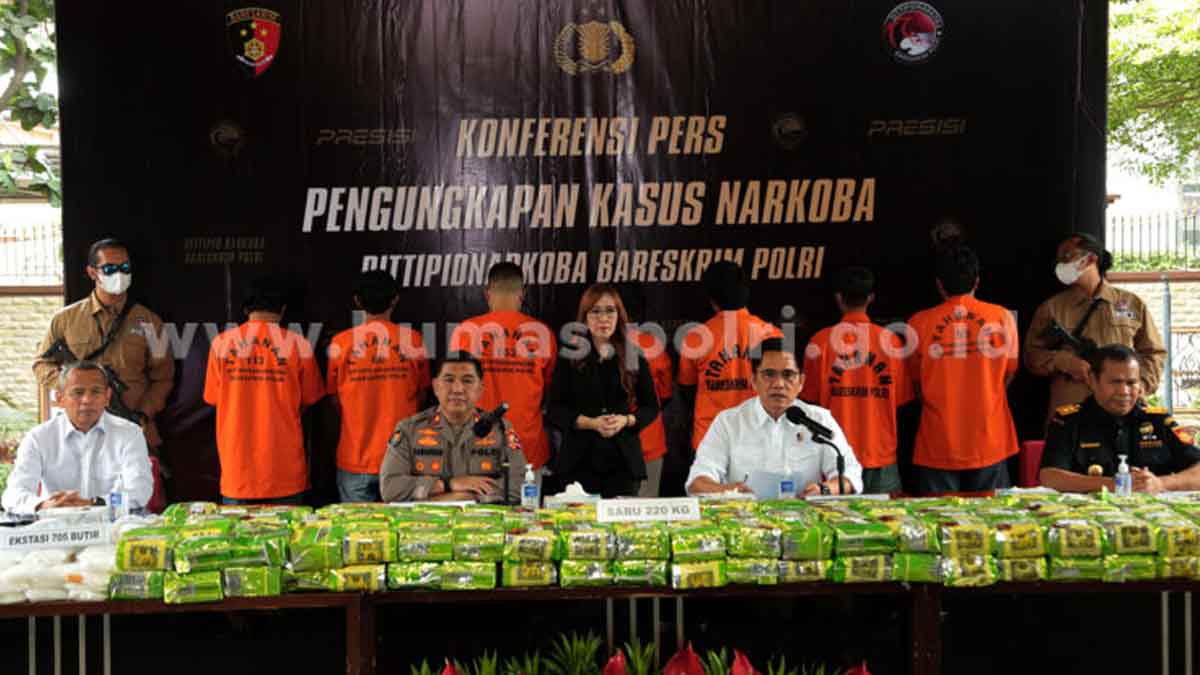 “Barang bukti sabu 220 kg, sebanyak 880.000 jiwa (terselamatkan) dengan asumsi 1 gram sabu untuk 4 orang per hari. Barang bukti ekstasi 705 butir sebanyak 705 jiwa (diselamatkan) dengan asumsi 1 butir ekstasi untuk 1 orang per hari,” imbuhnya.***