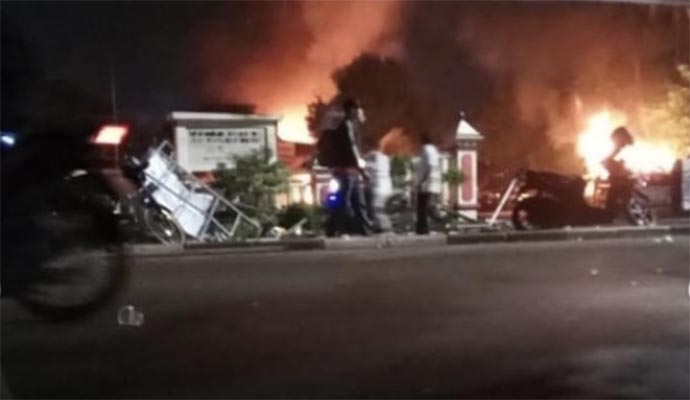 Selain melakukan pengrusakan terhadap gedung, pelaku penyerangan bahkan membakar dua unit mobil yang sedang terparkir di dalam halaman Polsek dan juga memecahkan kaca bus polisi dan pengerusakan di sepanjang jalan raya Bogor. (PMJ/red)