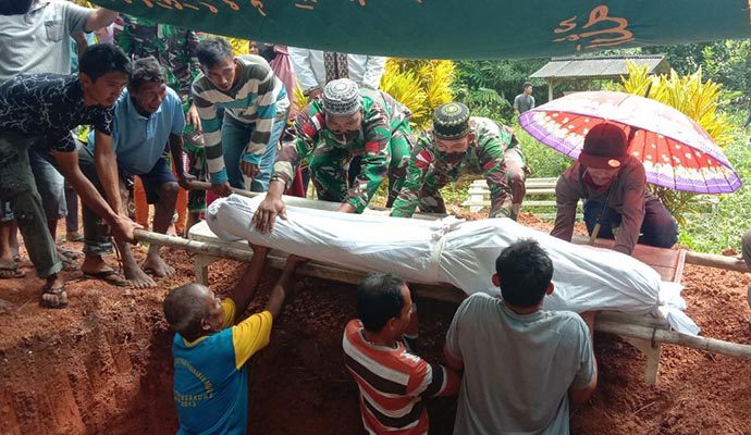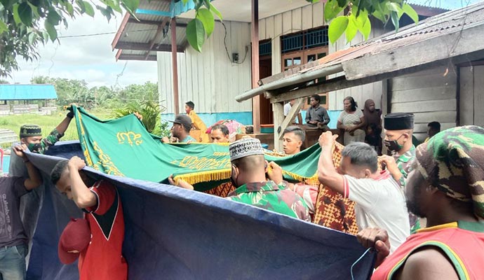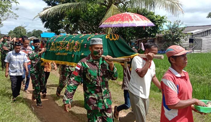 Sebagai bentuk kepedulian dan rasa empati terhadap sesama, Prajurit TNI dari Yonif 125/Simbisa yang tergabung dalam Satgas Pamtas RI-PNG, ikut membantu proses pemakaman almarhum Sabroni Bin Radi warga Kampung Kirely di Tempat Pemakaman Umum (TPU) Kampung Kirely, Distrik Ulilin, Kabupaten Merauke, Papua, Minggu (2/8/2020).