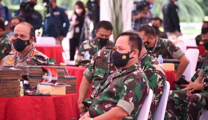 Seyogyanya Panglima TNI Jenderal Andika hadir dalam Rapim ini, namun oleh karena terkomfirmasi Covid 19, kegiatan diwakili Kepala Staf Angkatan Laut (KSAL) Laksamana Yudo Margono.
