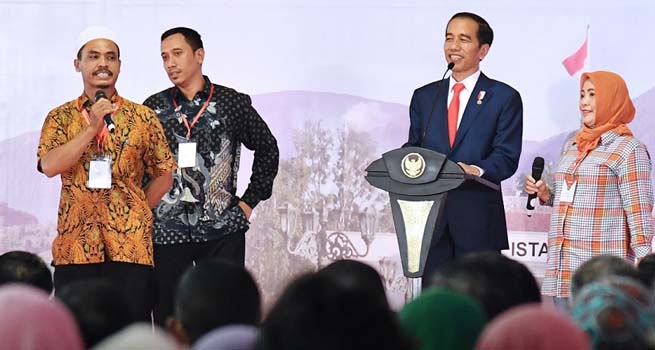 Turut hadir mendampingi Presiden, Menteri Agraria dan Tata Ruang/Kepala BPN Sofyan Djalil, Menteri Sosial Idrus Marham, Kepala Staf Kepresidenan Moeldoko dan Koordinator Staf Khusus Presiden Teten Masduki. (Ian Lukito)