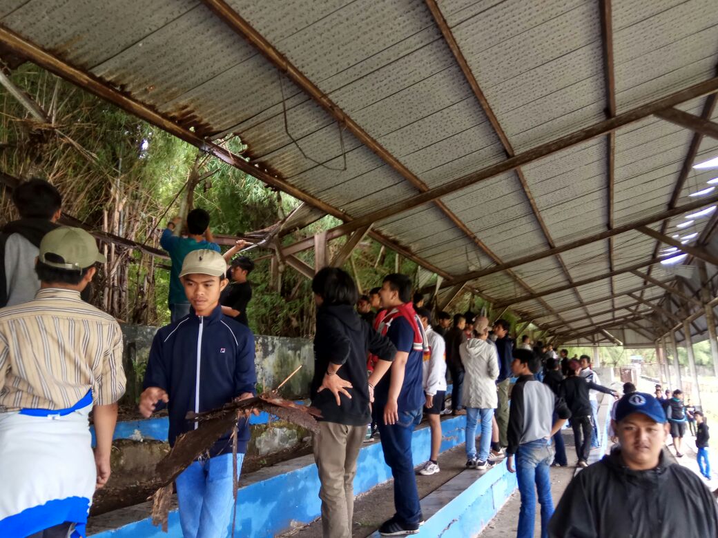 Mereka terlihat saling berbaur tanpa perbedaan satu sama lain, bersama melakukan pengecatan pagar yang sudah berkarat dan tempat duduk penonton yang sudah usang.