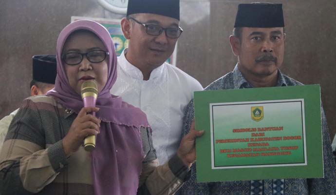 “Alhamdulillah dari dulu saya belum menjadi Bupati dan sekarang sudah menjadi Bupati sambutannya masyarakat disini begitu meriah, dulu saya janji kalau terpilih saya pasti akan datang kesini untuk memberi bantun dan alhamdulillah saya tepati janji saya serta membawa bantuan dari Pemerintah Kabupaten Bogor untuk masjid ini sebesar 50 juta rupiah,” kata Bupati.