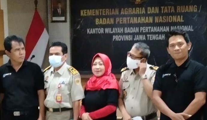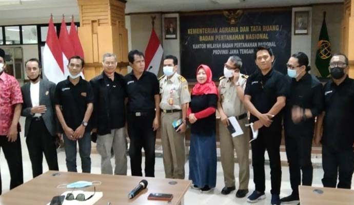 ” Jadi kita tidak diterima langsung oleh kepala Kanwil BPN Provinsi Jawa Tengah Ir. Embun Sari MT, Lantaran yang bersangkutan sedang berdinas di kementrian Pusat yang ada di Jakarta,” ujar Riyanto