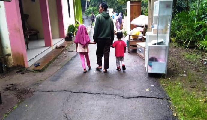 “Selain merusak bangunan pemukiman warga setempat, tanah bergerak juga menyebabkan keretakan badan jalan poros penghubung antar desa (Manggis-Bumiwah), keretakan jalan antar RT di Dusun Sambungregel, serta Masjid Baitul Muqorrobin mengalami rusak ringan,” imbuhnya.